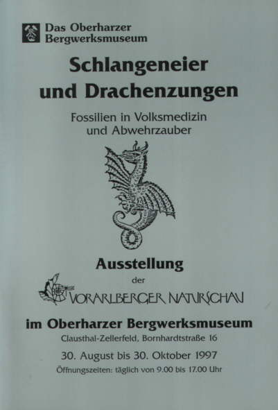 Einwerben, Organisieren und Durchführung, Betreuung der Wander-Ausstellung "Schlangeneier und Drachenzungen" in Osterode am Harz und Clausthal-Zellerfeld.