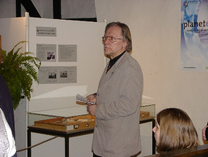 Linkes Bild: der Autor bei der Vorstellung des Ausstellung "unter dem Waldelefanten".